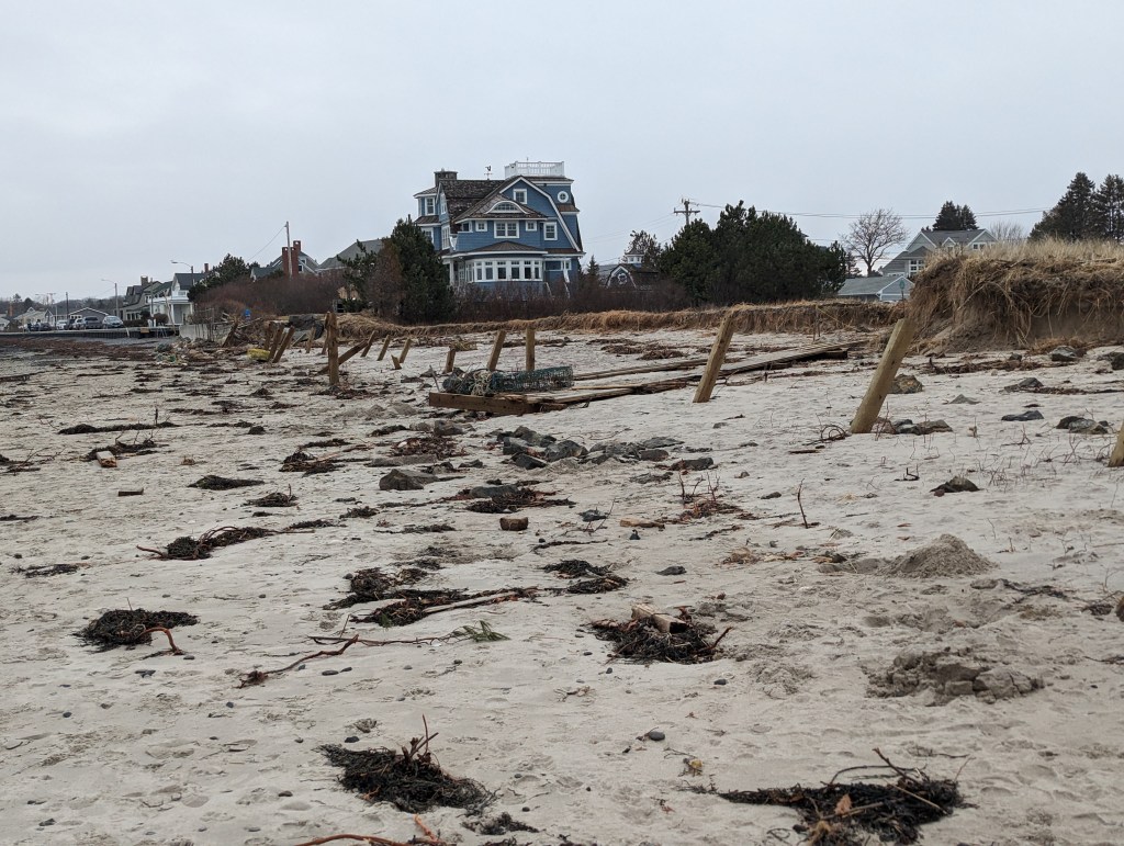 When we woke up, we decided to grab a quick bite from the complimentary continental breakfast that they serve. Their muffins are warm, and outstanding. I grabbed a cup of coffee in a to-go cup and threw a coat on. We walked the beach in our slippers. The sand was firm (like Long Sands Beach in York). There were several people walking about while their dogs were loving life on the beach. The beach was littered with broken fencing, damaged seawall, snapped pilings, and the occasional lobster pot that had washed ashore. In fact, there were lobster pots littered in the street along the beach, and the sidewalk was closed in several places due to the water undermining the integrity of it.