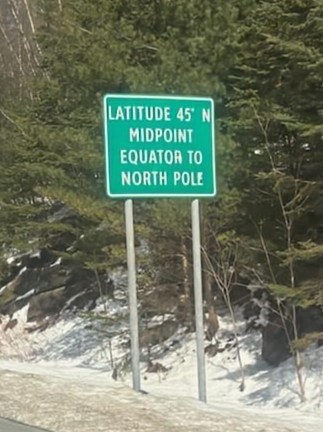 The drive up was uneventful. Traffic was lighter than I would have expected, but there was definitely more traffic heading North than South. We saw several campers, and saw license plates from as far away as Colorado, Montana, and Florida. CT and MA plates dominated the road, though… I topped off my gas tank several times. I didn’t want to have to buy gas across the border, as it is WAY more expensive. Also I was worried about the crowds and traffic heading back and was fearful of gas stations running out of fuel. I was happy to snap a picture of this road sign, just before the Canadian border. We’ve driven past it several times, and we’ve always been too late with the camera. It amazes me that just before the Canadian Border lies the 45th Parallel, meaning that the point is exactly halfway between the Equator and the North Pole.